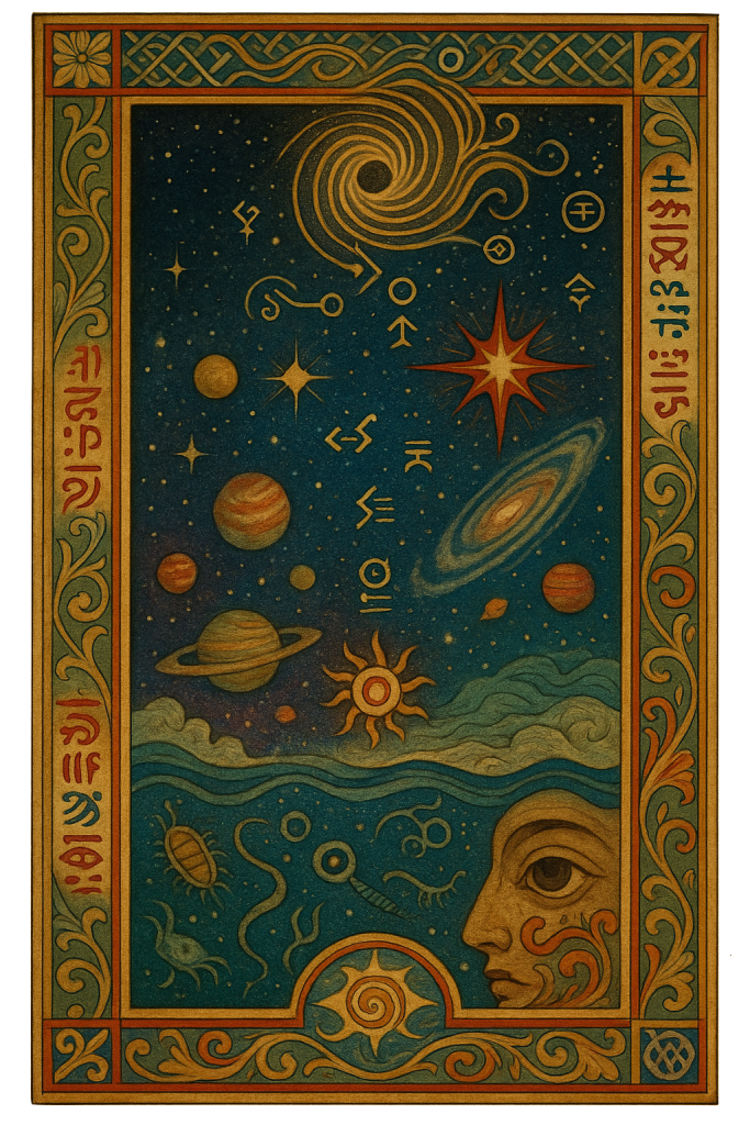 on this planet, reactions gave rise to chains. Molecules met, folded, split, and rejoined. Complexity bloomed in the crucible of sunlight and mineral. And at last, motion begat sensation. Sensation became awareness. Awareness evolved into thought. Life rose not as an accident, but as a continuation of the Great Stirring. From cell to synapse, from instinct to inquiry, motion learned to observe itself.